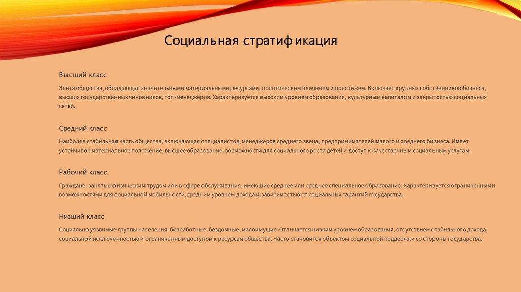 возможностями для социальной мобильности, средним уровнем дохода и зависимостью от социальных гарантий государства.