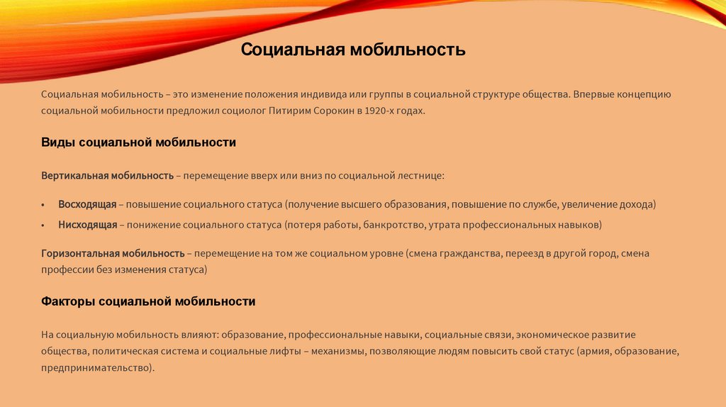 социальной мобильности предложил социолог Питирим Сорокин в 1920-х годах.