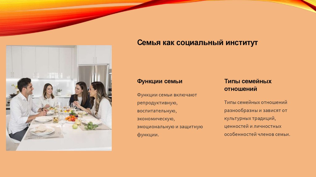 детей, обеспечивает эмоциональную поддержку, трансляцию социальных норм и