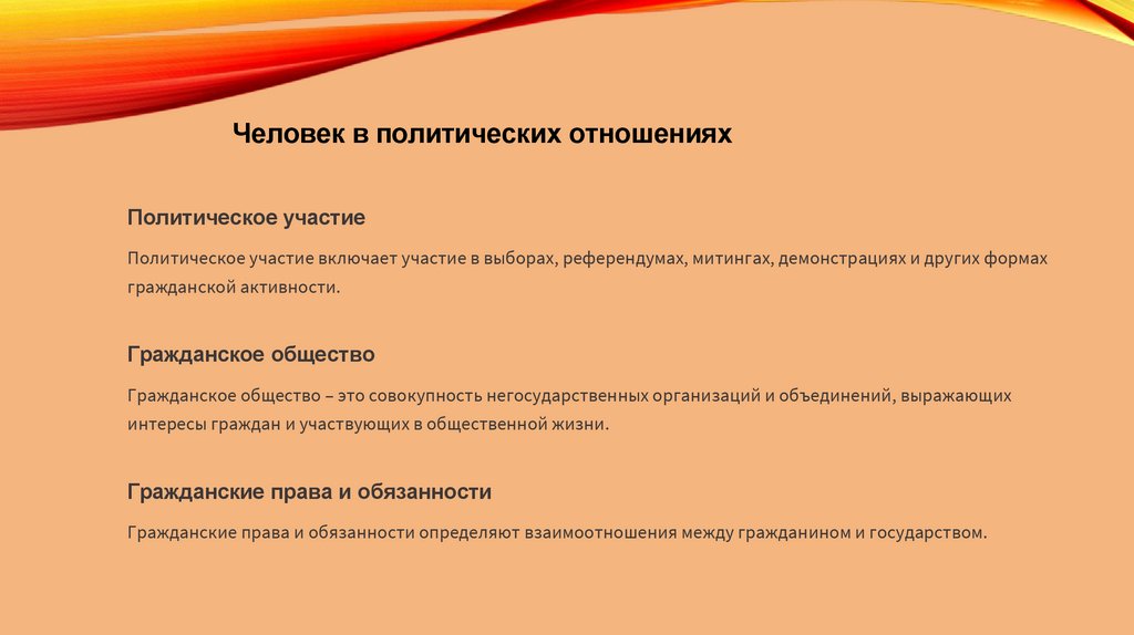 Политическое участие включает участие в выборах, референдумах, митингах, демонстрациях и других формах