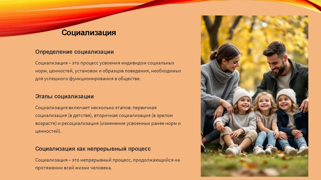 возрасте) и ресоциализация (изменение усвоенных ранее норм и