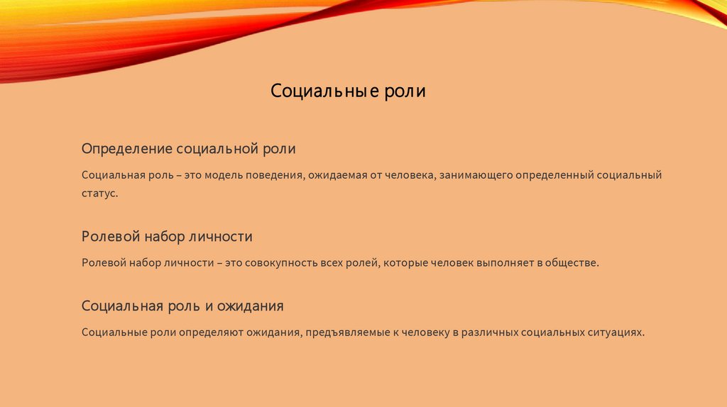 Социальные роли определяют ожидания, предъявляемые к человеку в различных социальных ситуациях.