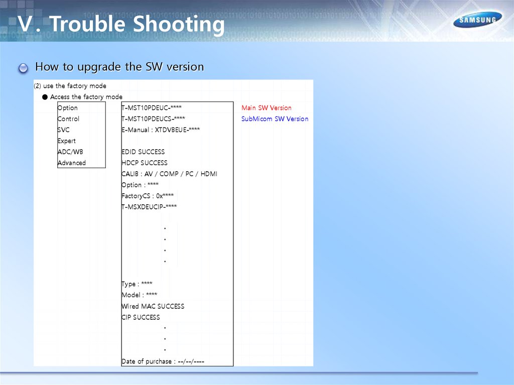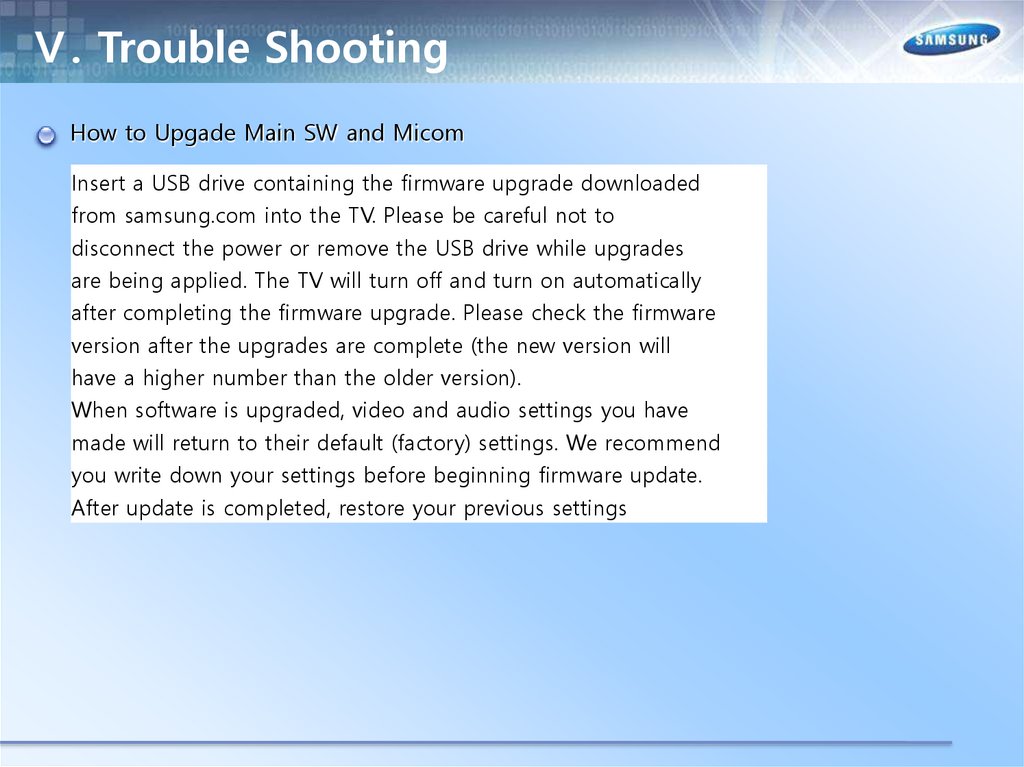 Ⅴ. Trouble ShootingHow to Upgade Main SW and Micom