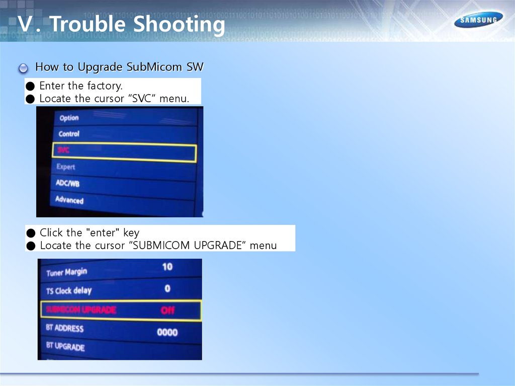 Ⅴ. Trouble ShootingHow to Upgrade SubMicom SW