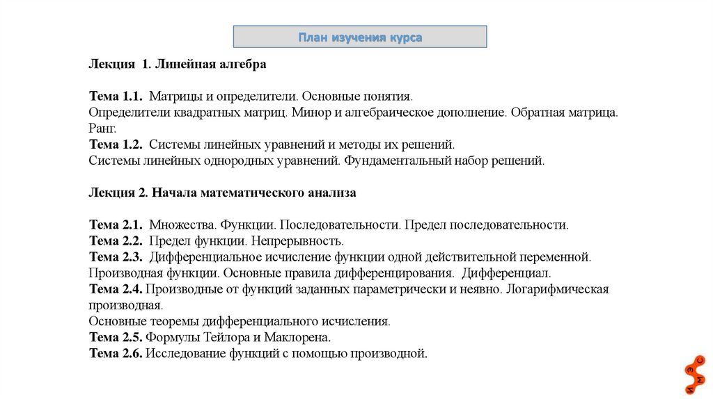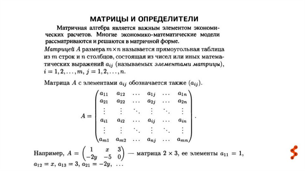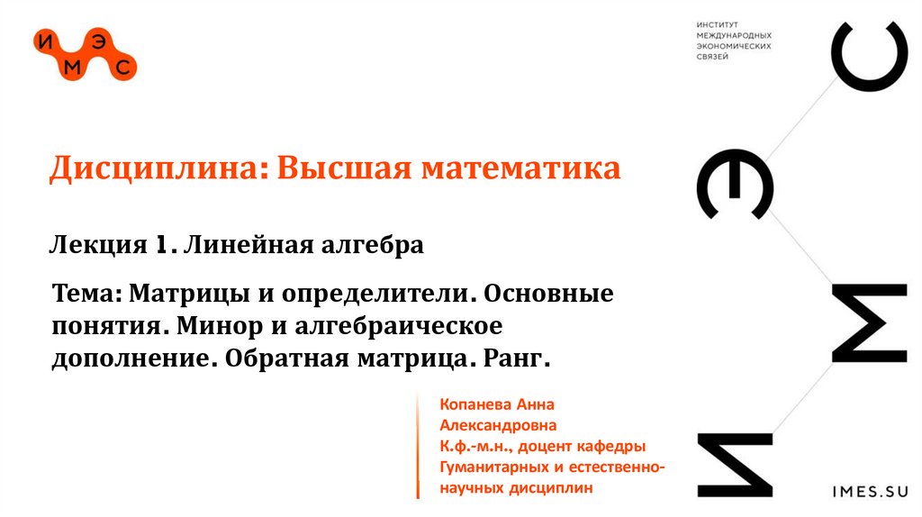 Лекция 1. Линейная алгебраТема: Матрицы и определители. Основные