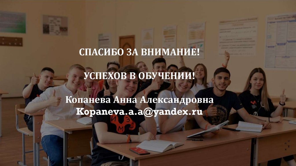 СПАСИБО ЗА ВНИМАНИЕ!УСПЕХОВ В ОБУЧЕНИИ!