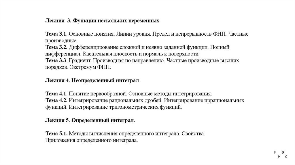 Лекция 3. Функции нескольких переменныхТема 3.1. Основные понятия. Линии уровня. Предел и непрерывность ФНП. Частные