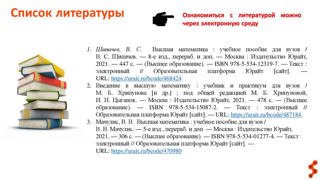 3. Мачулис, В. В. Высшая математика : учебное пособие для вузов /
