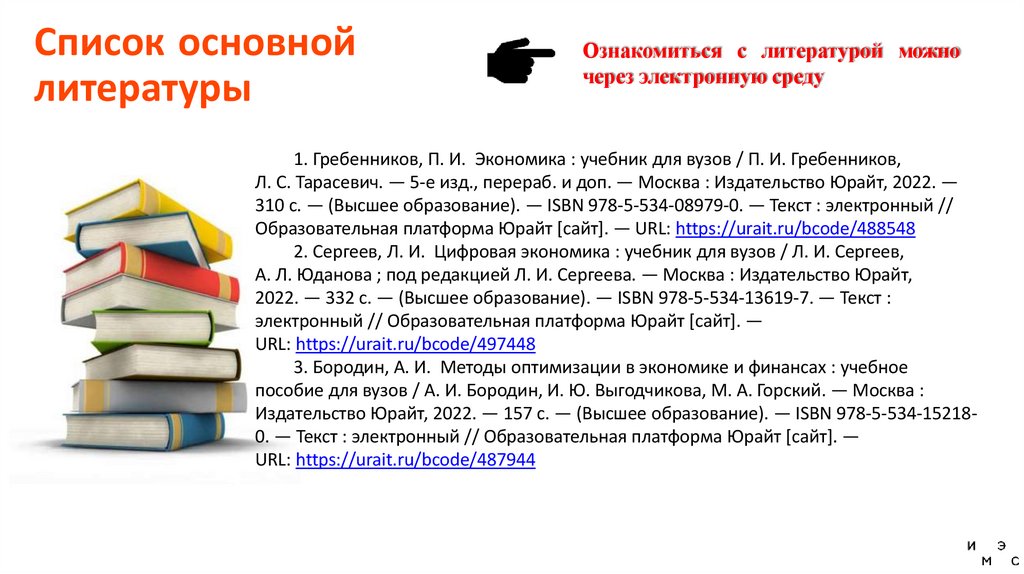 1. Гребенников, П. И. Экономика : учебник для вузов / П. И. Гребенников,