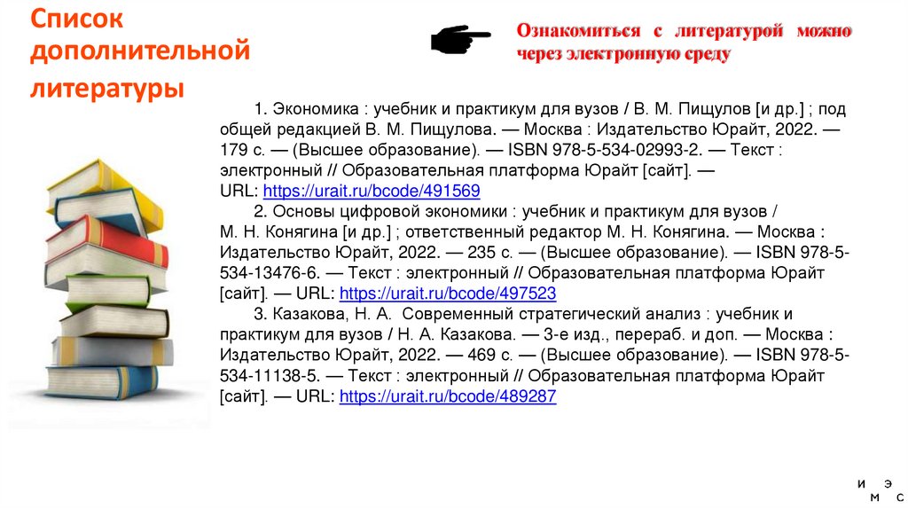 1. Экономика : учебник и практикум для вузов / В. М. Пищулов [и др.] ; под