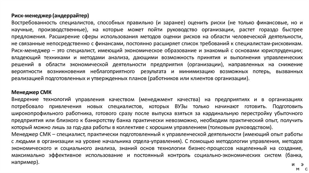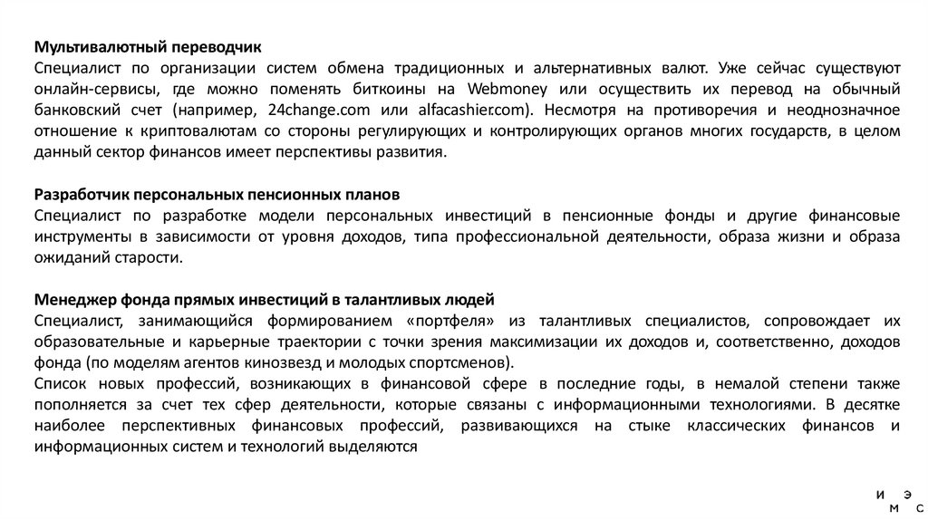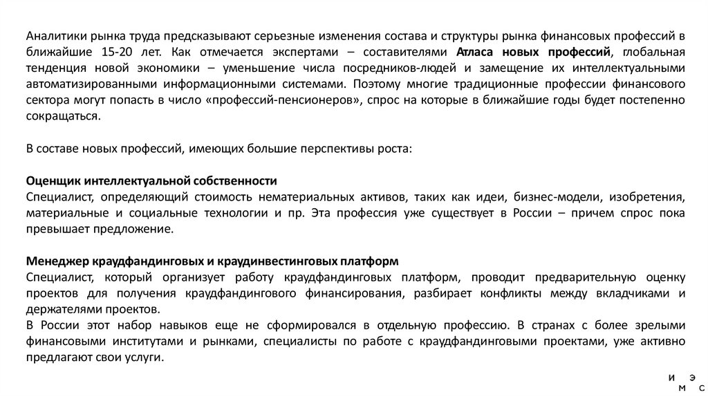 финансовыми принципами, методами и моделями будет сохраняться. В список профессий-аутсайдеров будут