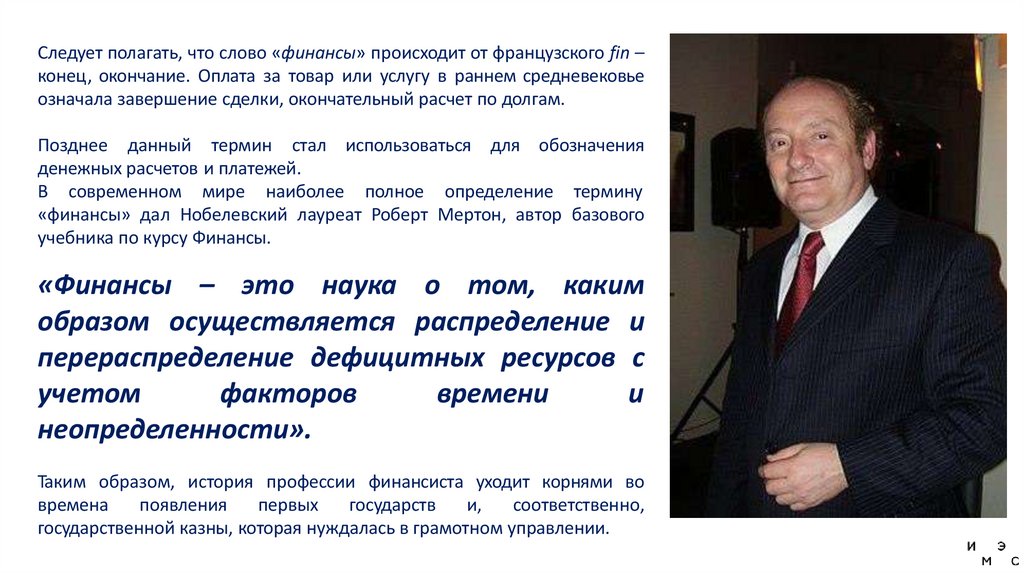 «финансы» дал Нобелевский лауреат Роберт Мертон, автор базового