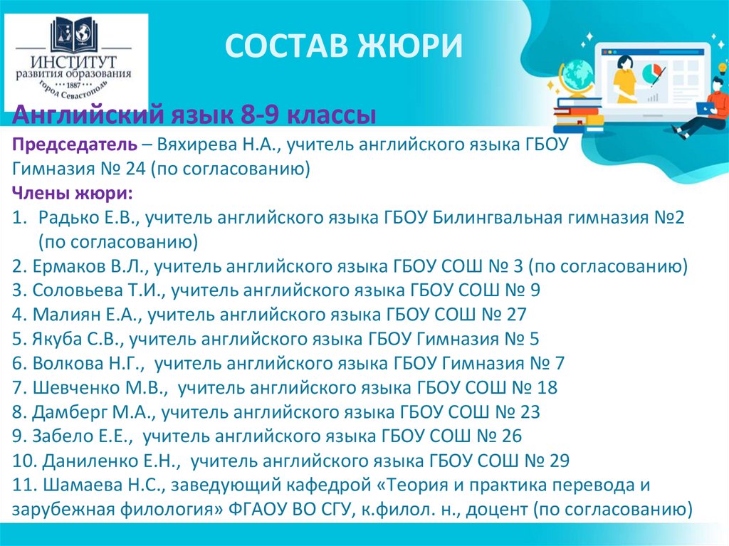 СОСТАВ ЖЮРИАнглийский язык 8-9 классы