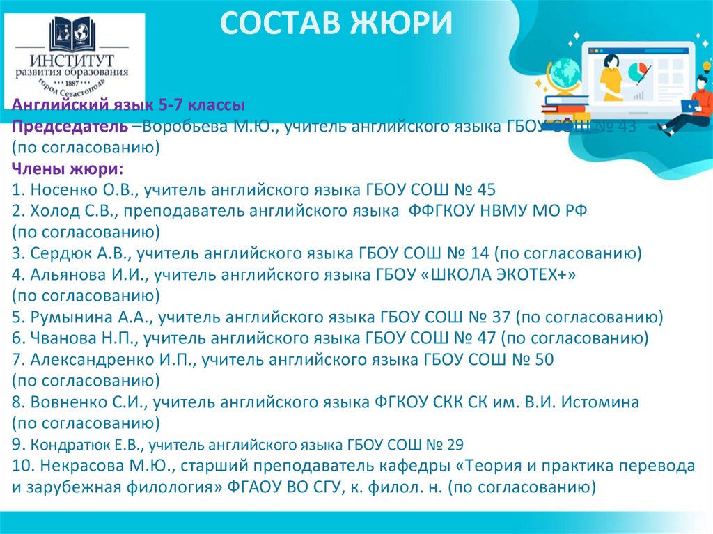 СОСТАВ ЖЮРИАнглийский язык 5-7 классы