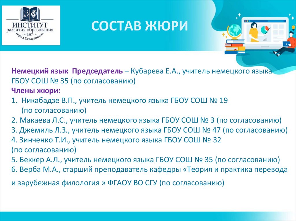 3. Джемиль Л.З., учитель немецкого языка ГБОУ СОШ № 47 (по согласованию)