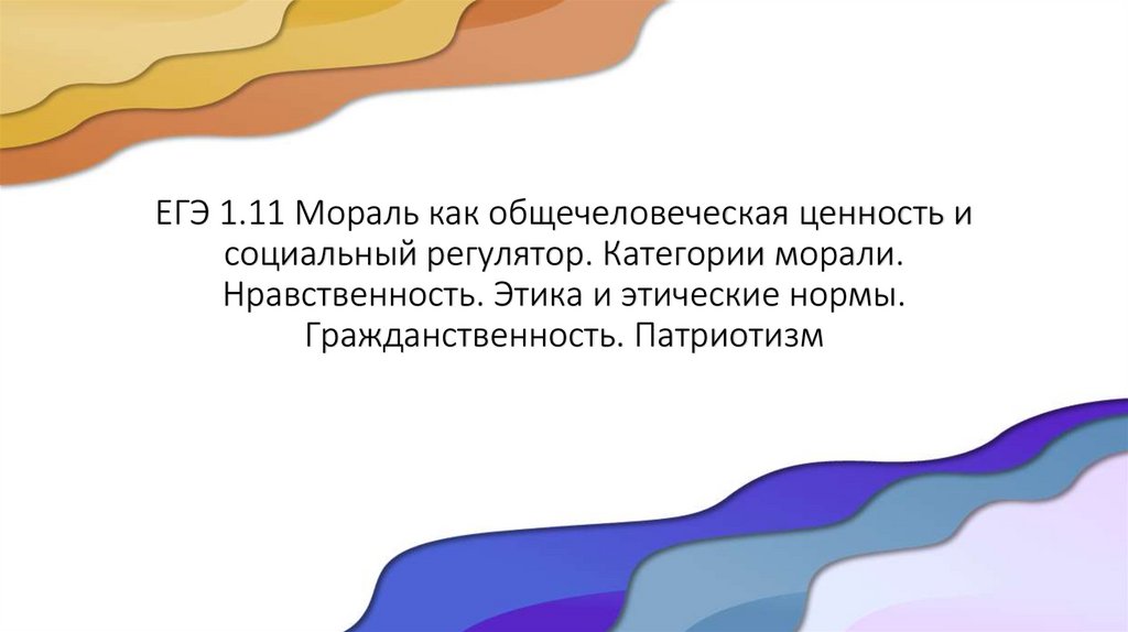 1. ЕГЭ 1.11 Мораль как общечеловеческая ценность и социальный регулятор. Категории морали. Нравственность. Этика и этические