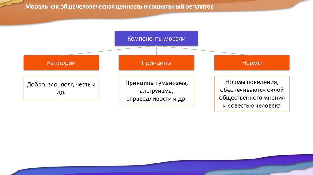 Мораль как общечеловеческая ценность и социальный регуляторКомпоненты морали