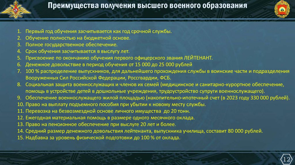 Денежное довольствие в период обучения от 15 000 до 25 000 рублей