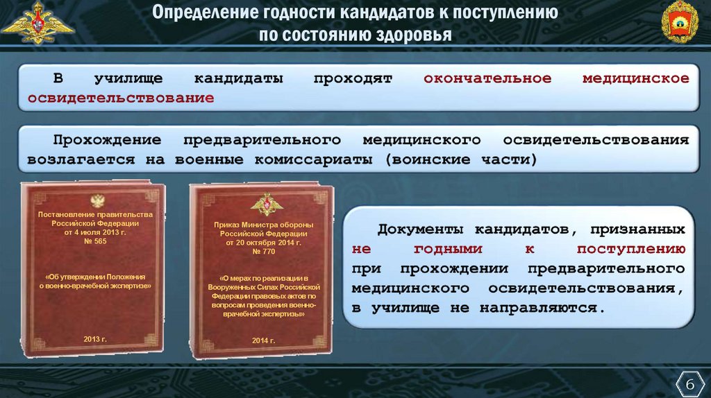 Определение годности кандидатов к поступлению по состоянию здоровья