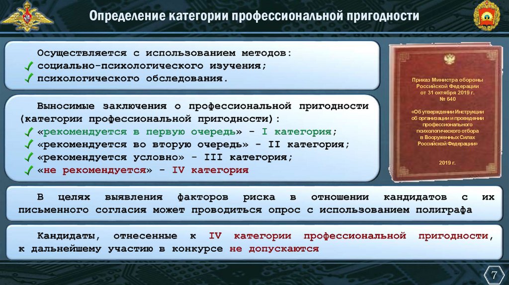 Определение категории профессиональной пригодностиПриказ Министра обороны