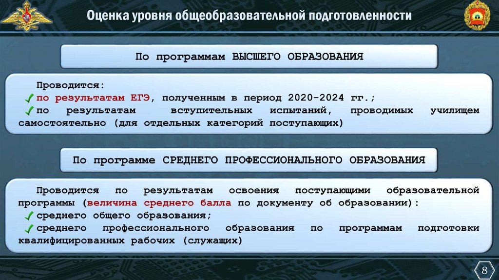 Оценка уровня общеобразовательной подготовленности кандидатов