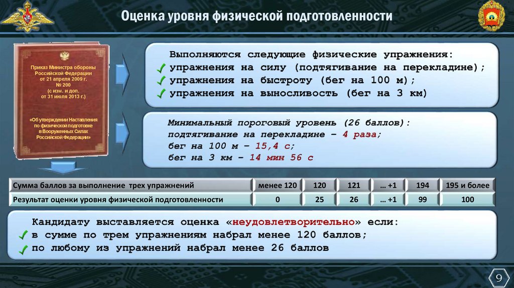 Оценка уровня физической подготовленностиПриказ Министра обороны