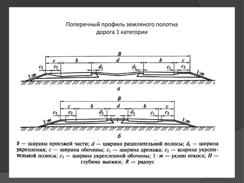 Поперечным профилем называютпредставленное на чертеже сечение дороги