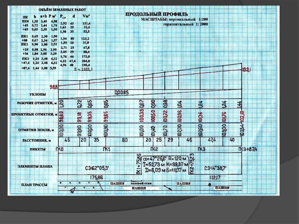 Продольный профиль дороги представляет собойчертеж с условным изображением вертикального