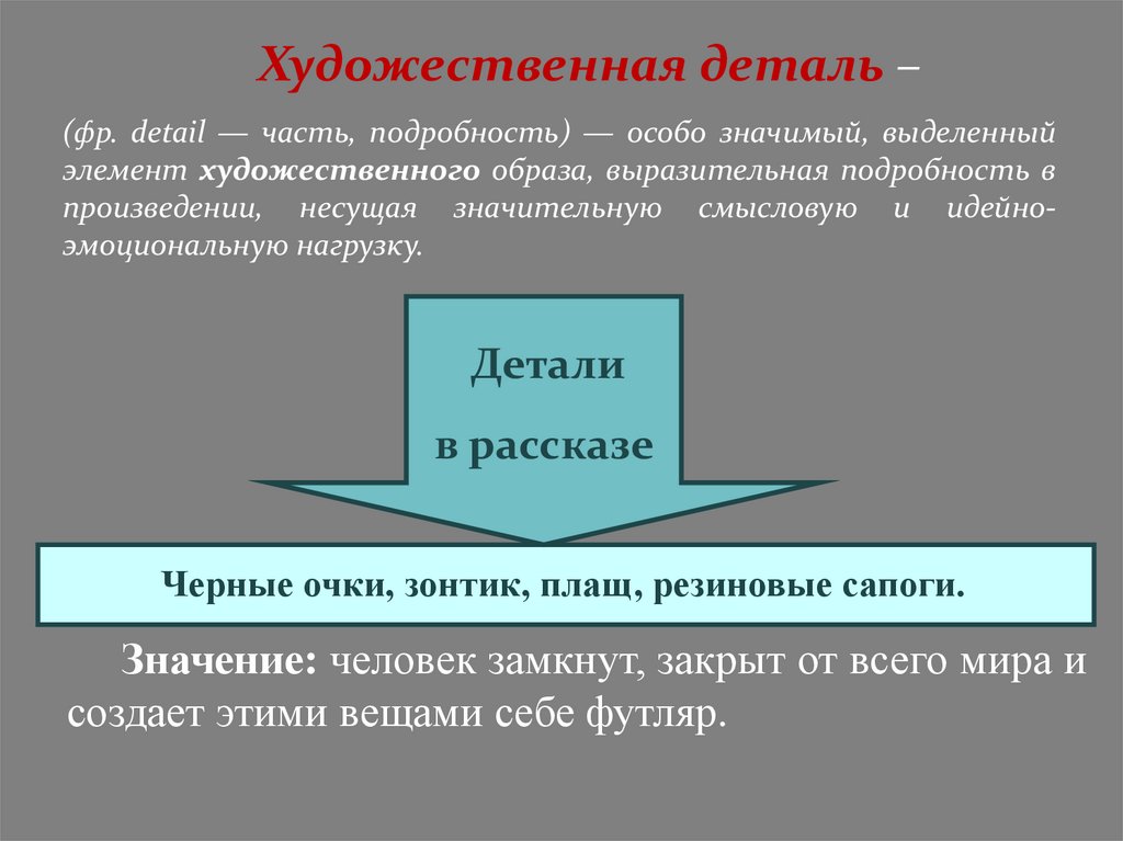 Художественная деталь –(фр. detail — часть, подробность) — особо значимый, выделенный