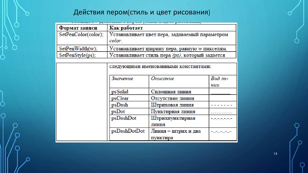 - Действия с пером