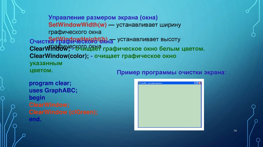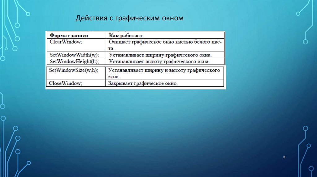 Действия с графическим окном8