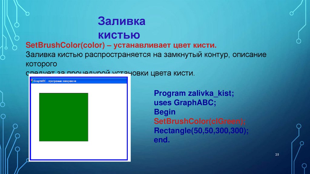 8. С помощью, какой процедуры можно залить цветом
