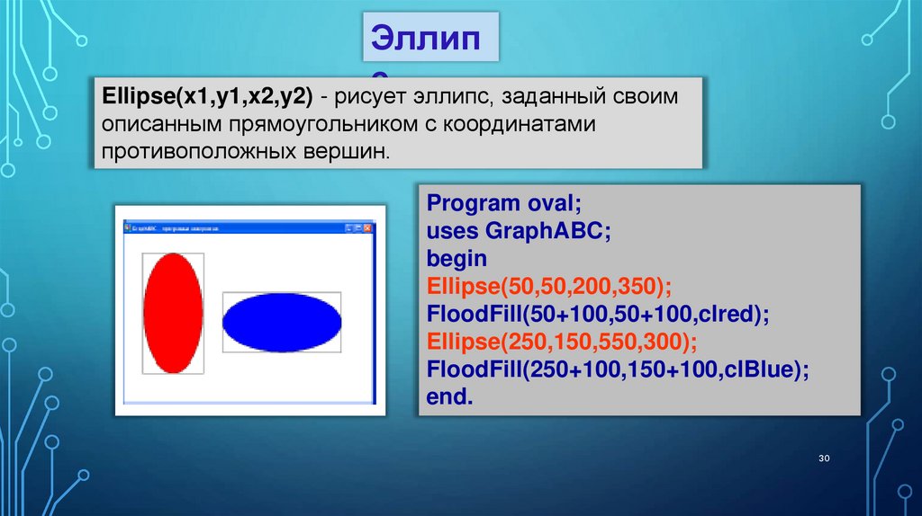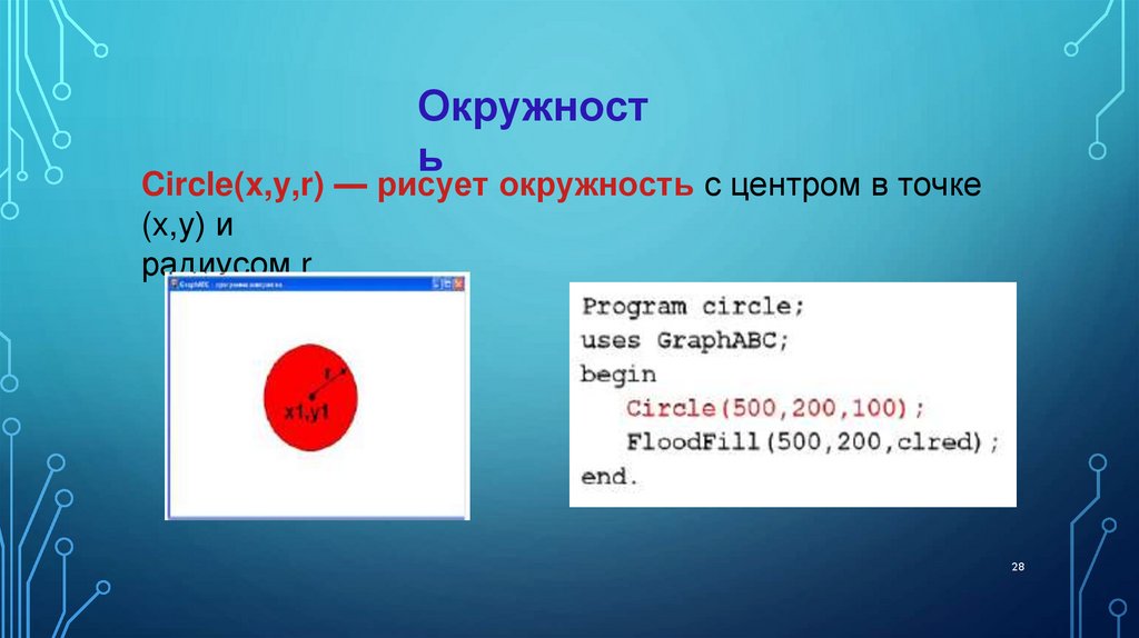 5. С помощью, какой процедуры можно рисовать окружность?