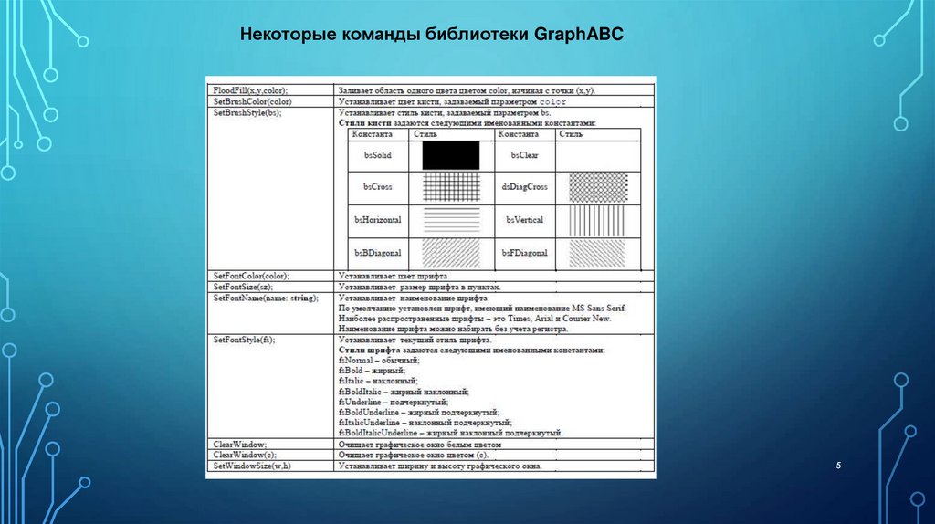 Некоторые команды библиотеки GraphABC5