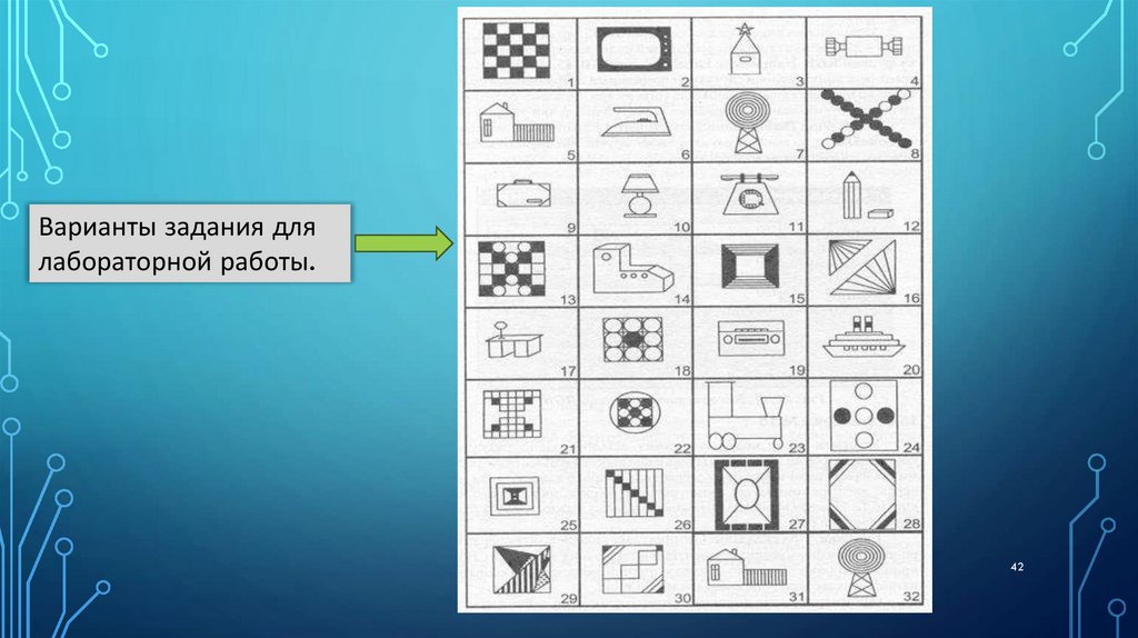 Варианты задания длялабораторной работы.