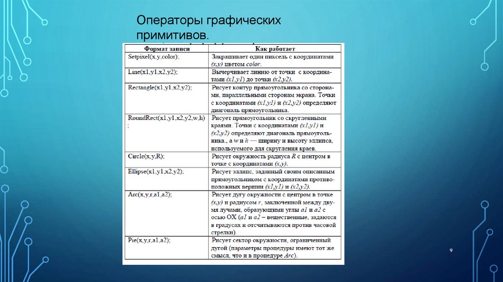 Операторы графическихпримитивов.