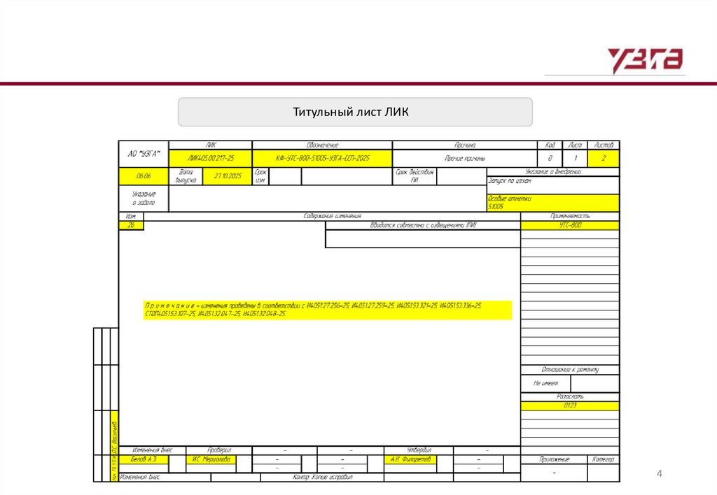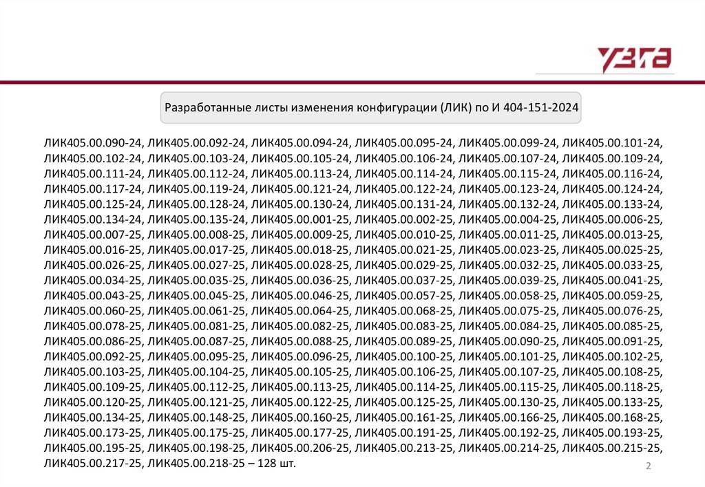 Разработанные листы изменения конфигурации (ЛИК) по И 404-151-2024ЛИК405.00.090-24, ЛИК405.00.092-24, ЛИК405.00.094-24, ЛИК405.00.095-24, ЛИК405.00.099-24, ЛИК405.00.101-24,