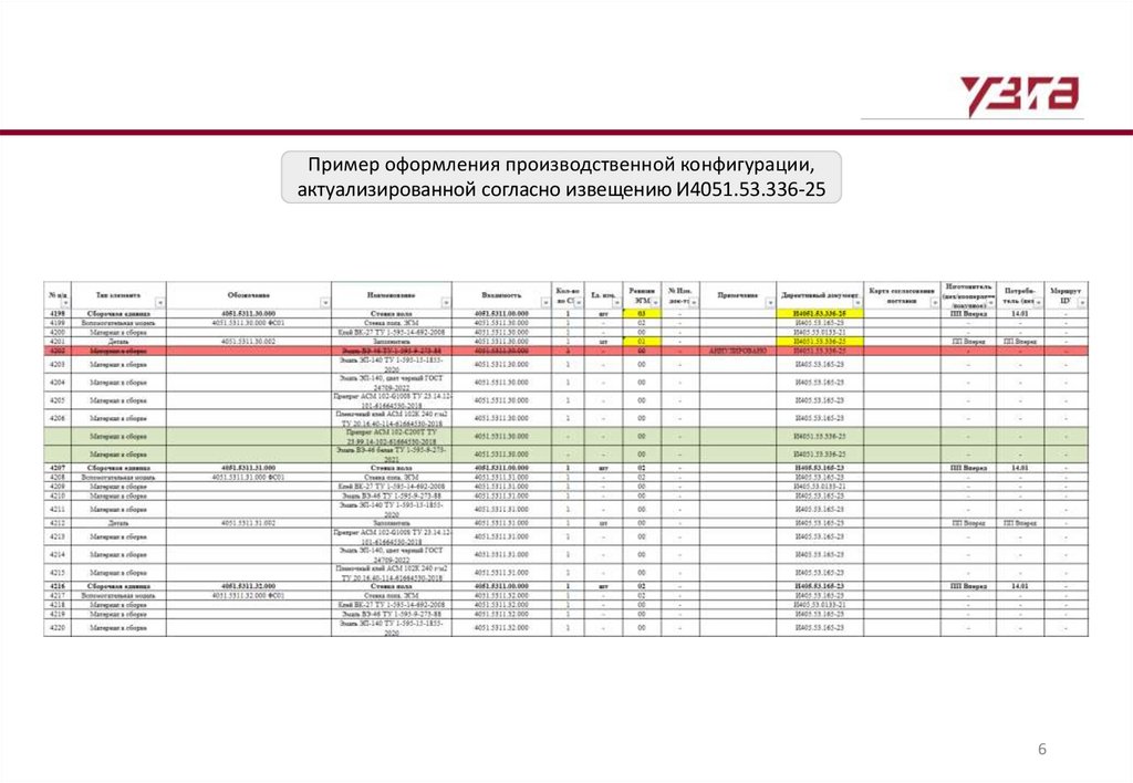 Пример оформления производственной конфигурации,актуализированной согласно извещению И4051.53.336-25