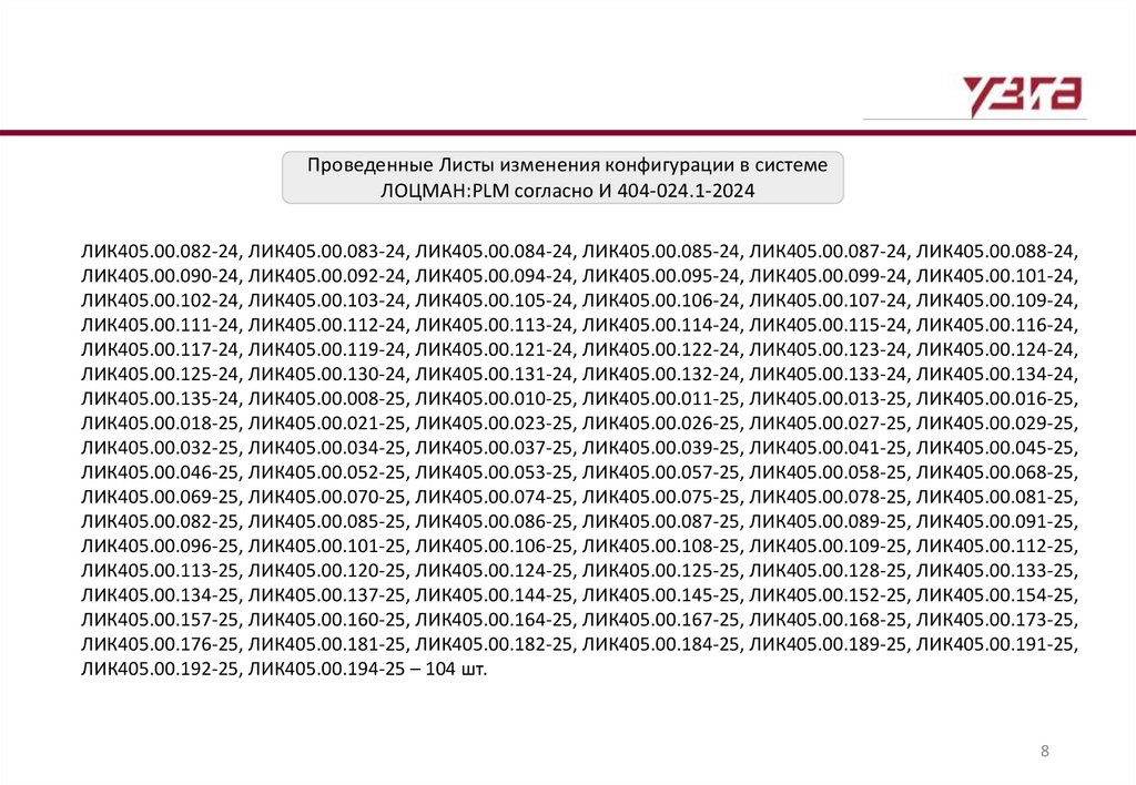 Проведенные Листы изменения конфигурации в системеЛОЦМАН:PLM согласно И 404-024.1-2024