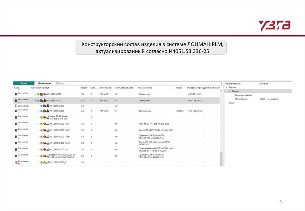 Конструкторский состав изделия в системе ЛОЦМАН:PLM,актуализированный согласно И4051.53.336-25