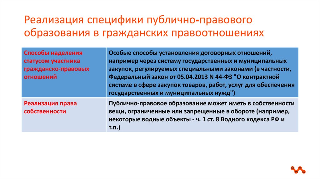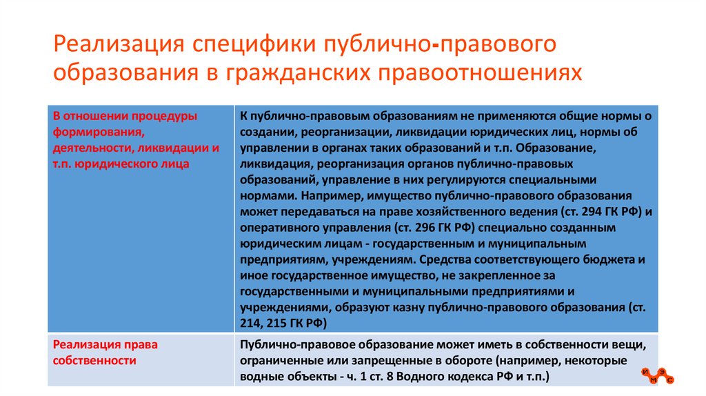 Реализация специфики публично-правовогообразования в гражданских правоотношениях