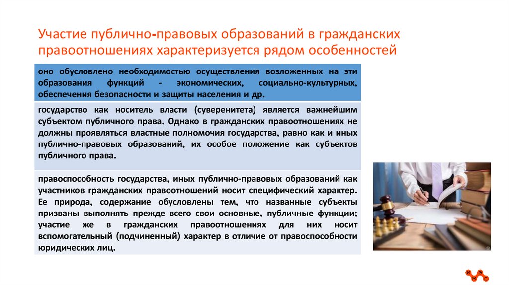 Особенности правового положения публичноправовых образованийПублично-правовые образования вступают в