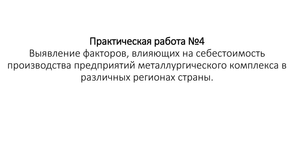 1. Практическая работа №4 Выявление факторов, влияющих на себестоимость производства предприятий металлургического комплекса в