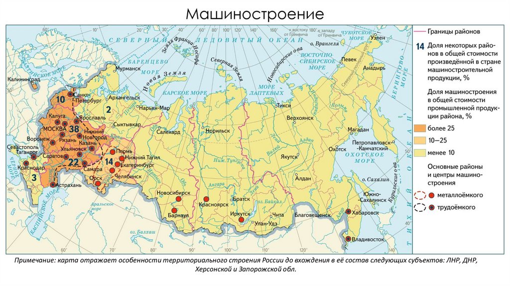 Примечание: карта отражает особенности территориального строения России до вхождения в её состав следующих субъектов: ЛНР, ДНР,Херсонской и Запорожской обл.