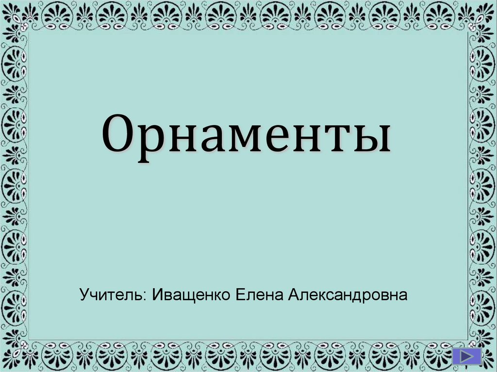 Учитель: Иващенко Елена Александровна2. Орнамент (от лат. Ornamentum – украшение) – узор, состоящий из ритмически упорядоченных элементов.