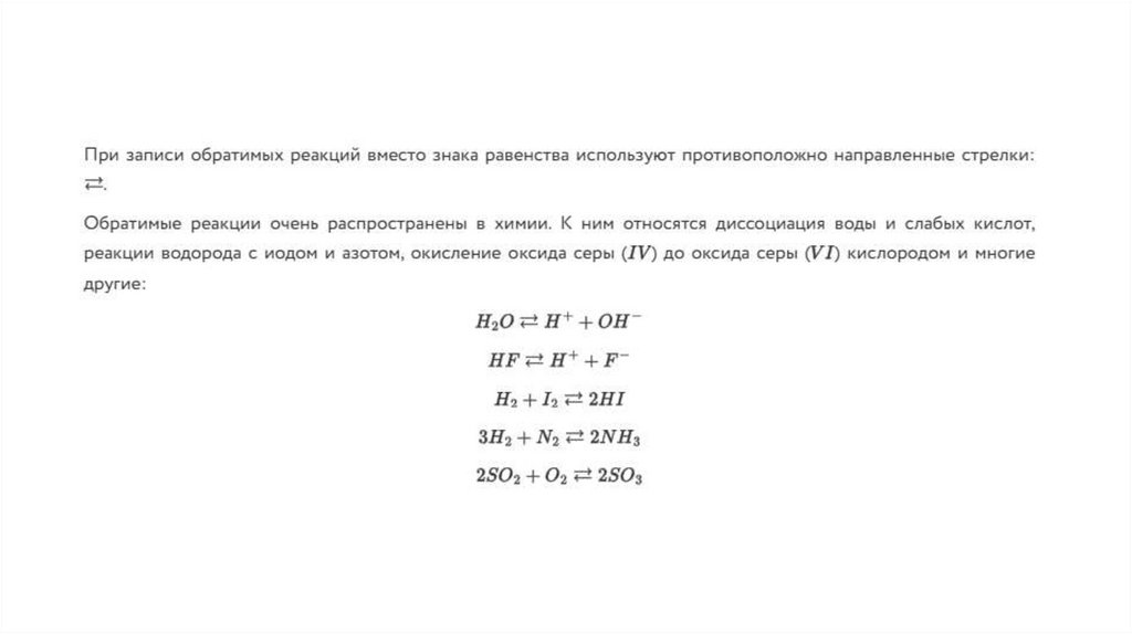Реакцию, идущую слева направо называют прямой, а справа налево – обратной.