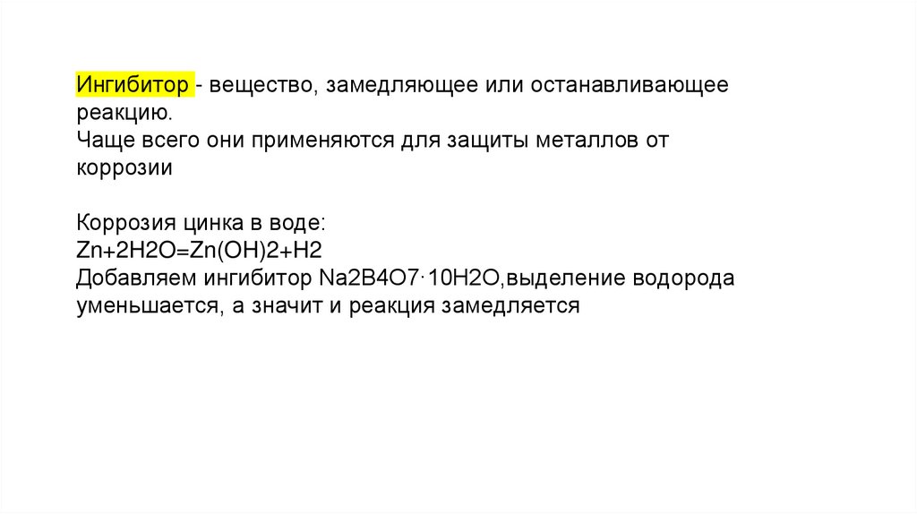 Ингибитор - вещество, замедляющее или останавливающеереакцию.