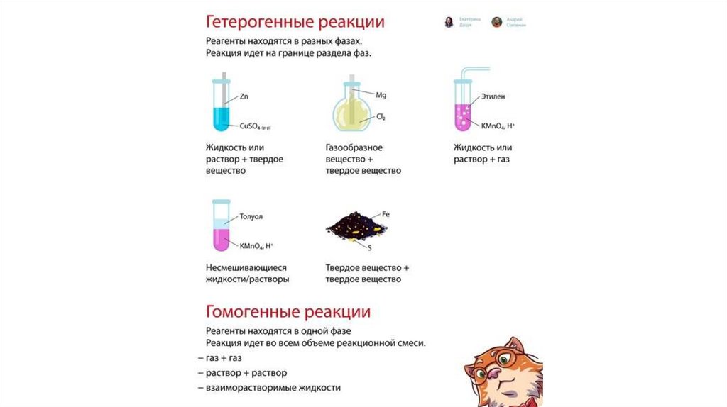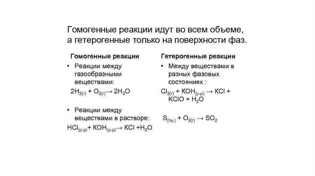 От агрегатного состояния:● Гомогенные реакции: реакции в
