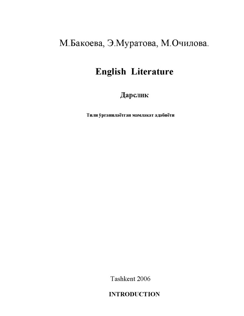 М.Бакоева, Э.Муратова, M.Очилова.English Literature