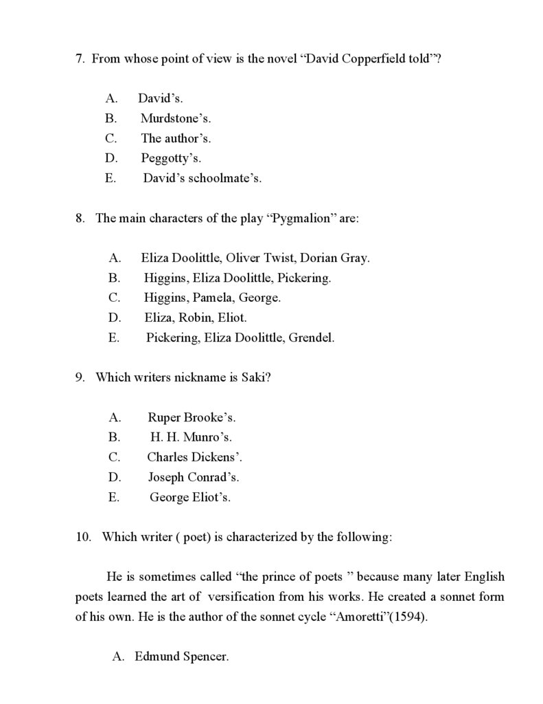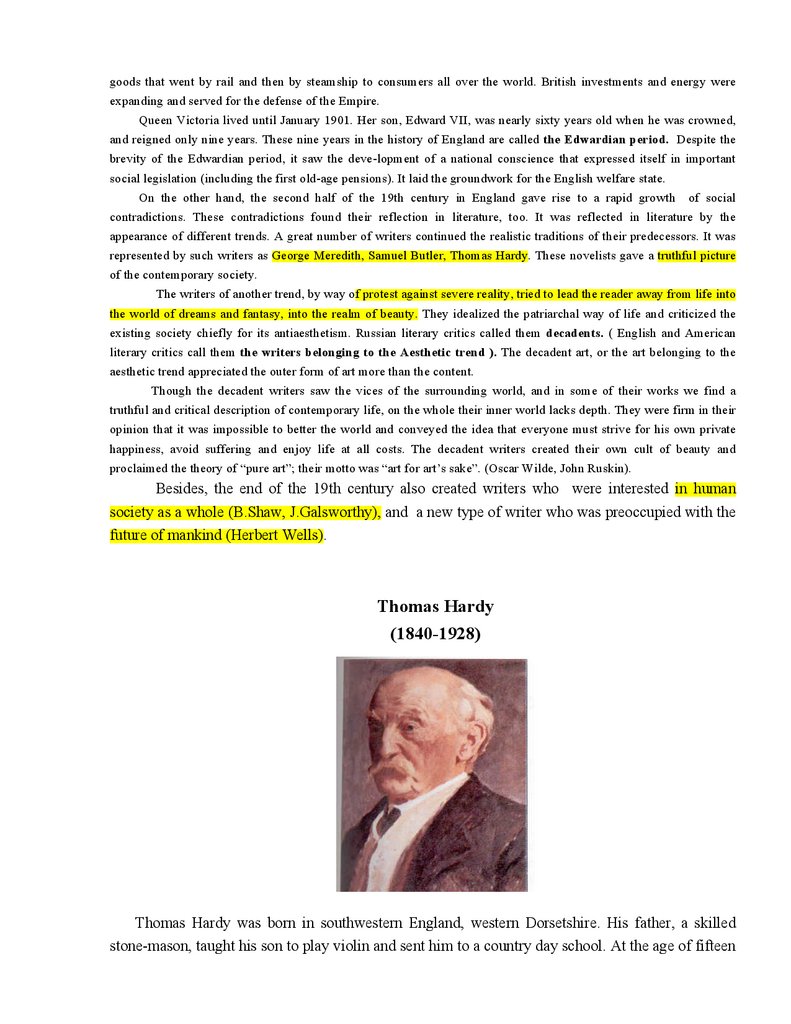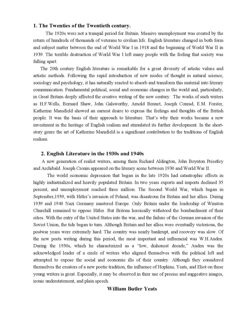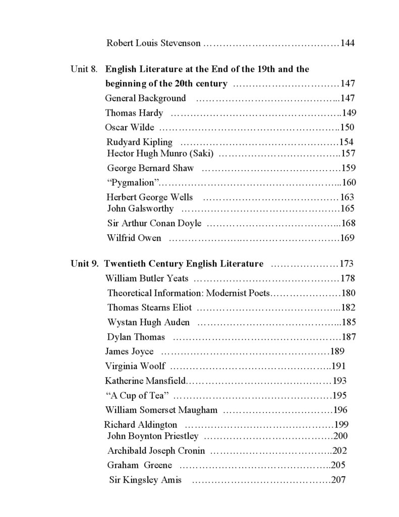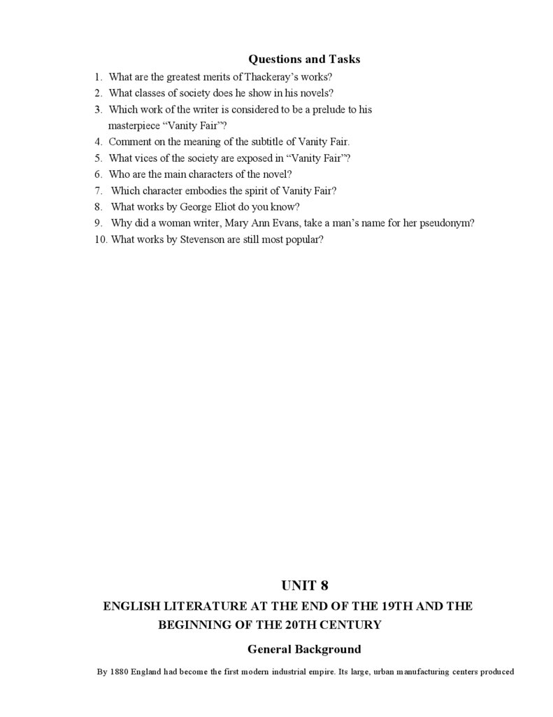 7. The Victorian Age.8. English Literature at the end of the 19th and the beginning of the
